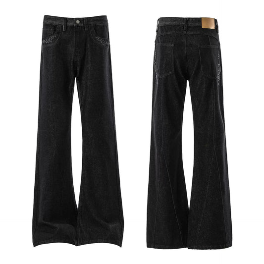 Y2K Retro Black Bootcut Denim Jeans Embroidery