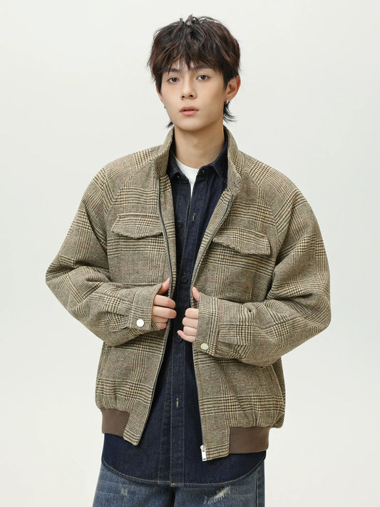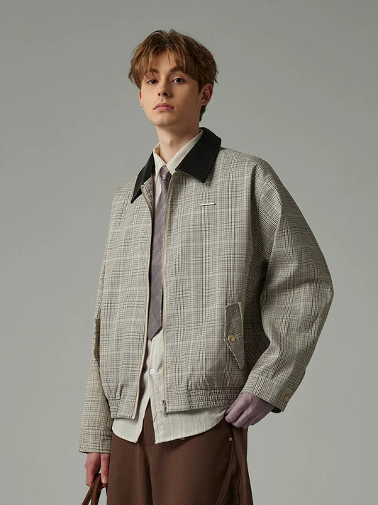 Maillard Plaid Harrington Jacket Stand Collar Design