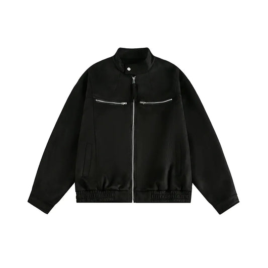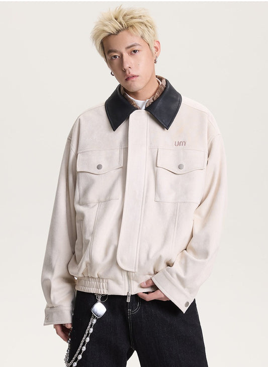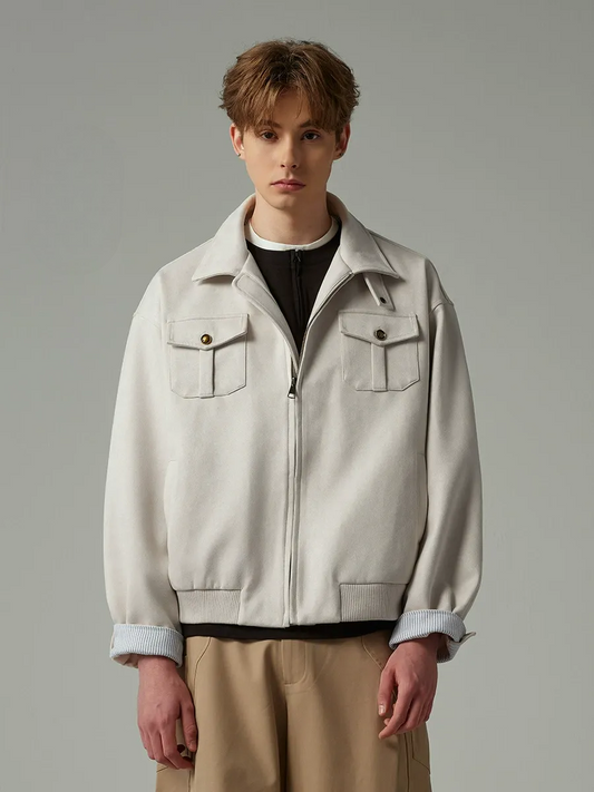 Vintage Faux Suede Jacket Relaxed & Zippered Pockets