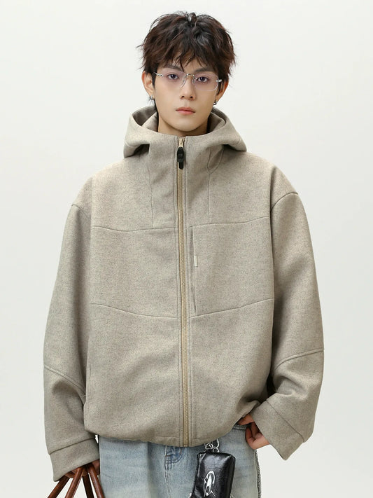 Heavyweight Wool Blend Hooded Jacket Classic & Warm