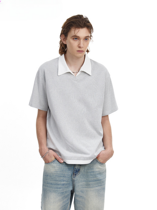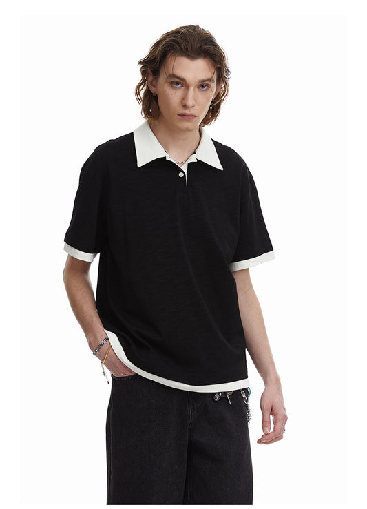 Contrasting Layered Polo Tee Retro Fake Two Piece Collar Tee