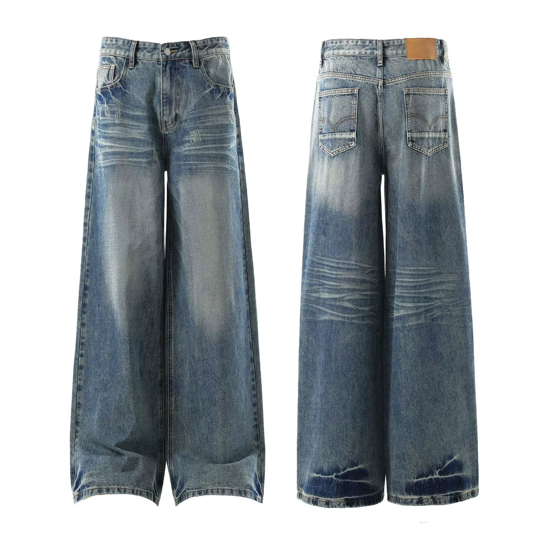 Vintage Blue Whiskered Denim Loose Fit Jeans