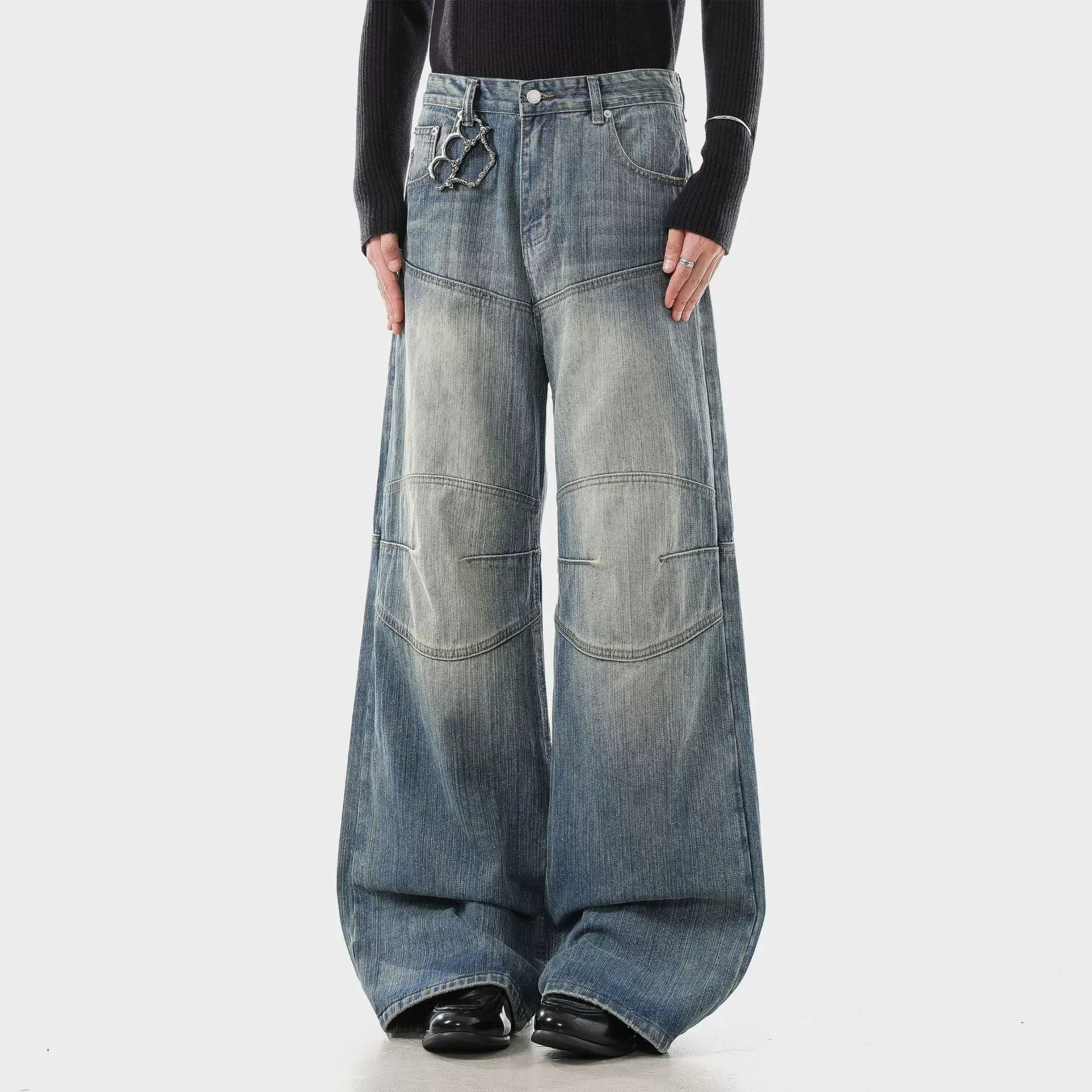 Vintage Wash Barrel Leg Jeans Panelled Knee